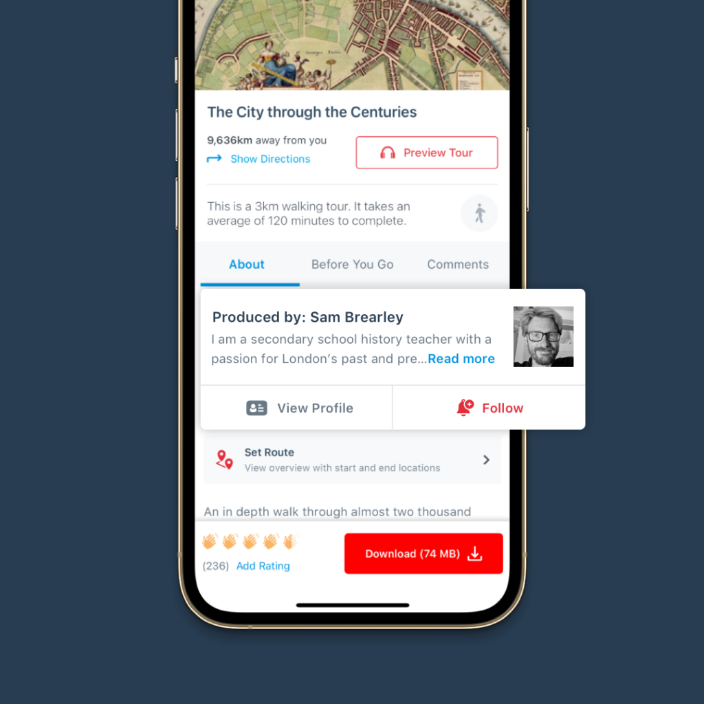 - Follow your favourite publishers – from history teacher Sam Brearley, who published our 100th tour in London, to Context Travel, which has tours in 15 countries by an incredible network of destination experts.
